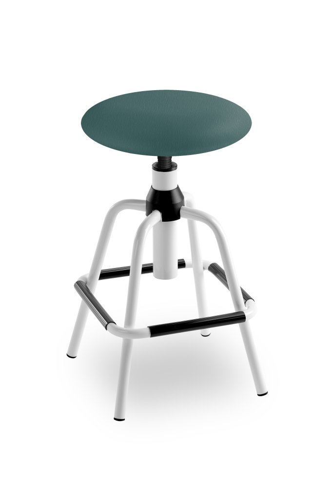 Taboret lekarski, tapicerka z tkaniny lub skóry nadającej się do prania, podnóżek ze stali nierdzewnej.