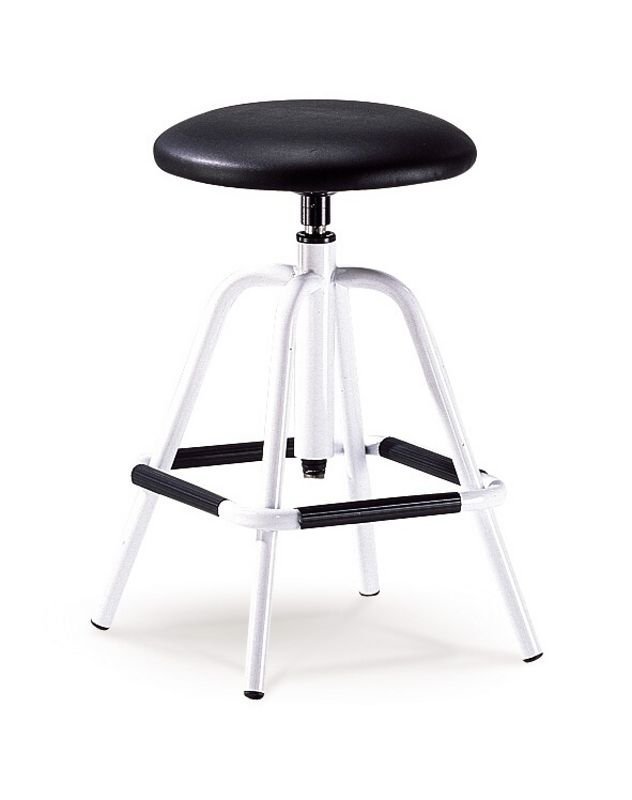 Taboret lekarski HK-K z okrągłą podstawą, która służy jednocześnie jako podpórka dla nóg. Rama chromowana, wysokość siedziska 44-57 cm, tapicerka skórzana nadająca się do prania, nośność 150 kg.