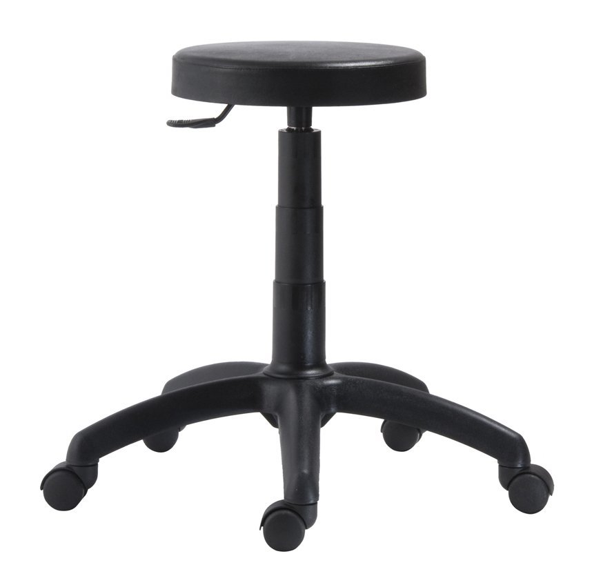 Krzesło warsztatowe z poliuretanu, regulowany kąt oparcia, regulowana wysokość oparcia i głębokość siedziska, tłok gazowy. Kółka lub ślizgacze, możliwość podwyższonego siedziska z okrągłym podnóżkiem. Krzyż plastikowy lub chromowany. Cena bez podłokietników.
