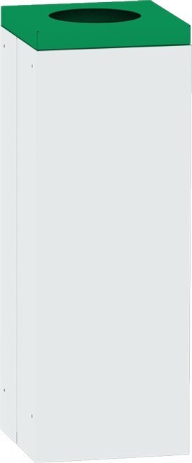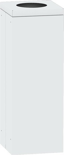Kwadratowy stabilny kosz na śmieci ze zdejmowaną pokrywą odpowiedni do sortowania odpadów. Wysokość 700 x szerokość 210 x głębokość 210 mm, pojemność 28 l. Kolor kosza jasnoszary RAL 7035, pokrywa z okrągłym otworem ø 150 mm w różnych kolorach umożliwiających rozróżnienie rodzaju odpadów. Tylko do użytku wewnętrznego.