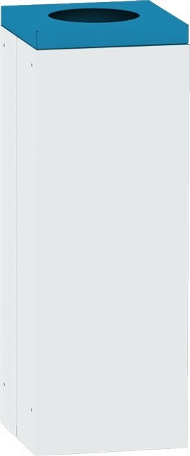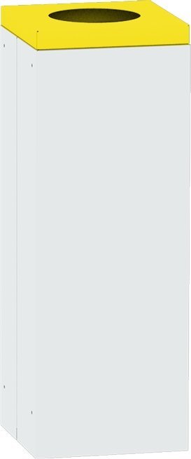 Kwadratowy stabilny kosz na śmieci ze zdejmowaną pokrywą odpowiedni do sortowania odpadów. Wysokość 700 x szerokość 295 x głębokość 295 mm, pojemność 57 l. Kolor kosza jasnoszary RAL 7035, pokrywa z okrągłym otworem ø 200 mm w różnych kolorach umożliwiających rozróżnienie rodzaju odpadów. Tylko do użytku wewnętrznego.