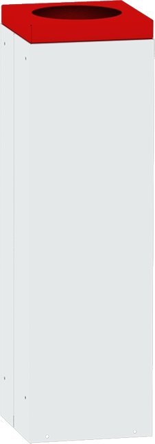 Kwadratowy stabilny kosz na śmieci ze zdejmowaną pokrywą odpowiedni do sortowania odpadów. Wysokość 700 x szerokość 255 x głębokość 255 mm, pojemność 42 l. Kolor kosza jasnoszary RAL 7035, pokrywa z okrągłym otworem ø 150 mm w różnych kolorach umożliwiających rozróżnienie rodzaju odpadów. Tylko do użytku wewnętrznego.