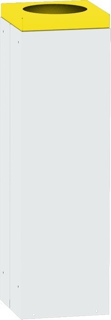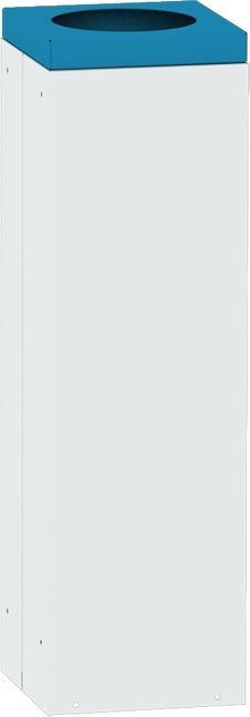 Kwadratowy stabilny kosz na śmieci ze zdejmowaną pokrywą odpowiedni do sortowania odpadów. Wysokość 700 x szerokość 295 x głębokość 295 mm, pojemność 57 l. Kolor kosza jasnoszary RAL 7035, pokrywa z okrągłym otworem ø 200 mm w różnych kolorach umożliwiających rozróżnienie rodzaju odpadów. Tylko do użytku wewnętrznego.