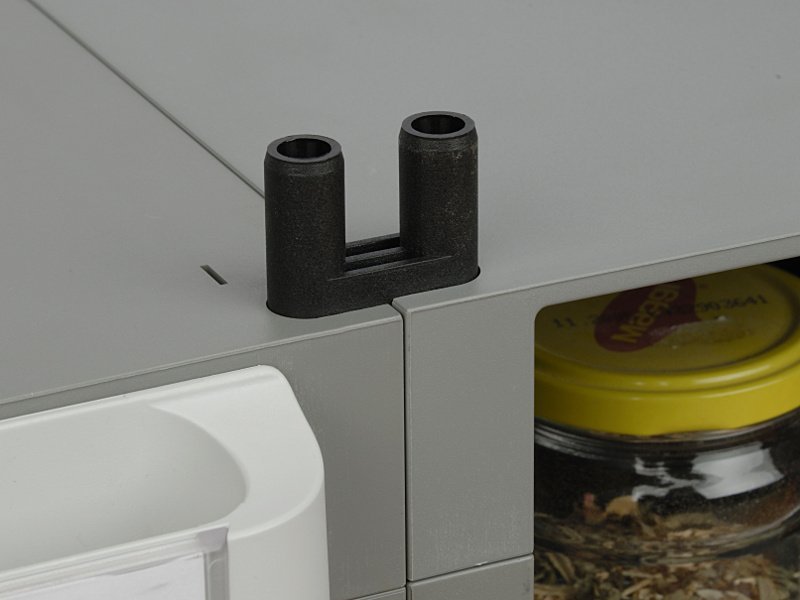 Złącze H służy do łączenia oddzielnych zespołów od solidnych ram do stojaków lub innych większych jednostek. Służy do łączenia narożników czterech sąsiednich zespołów. Przykłady zastosowań znajdziesz wśród załączonych zdjęć.