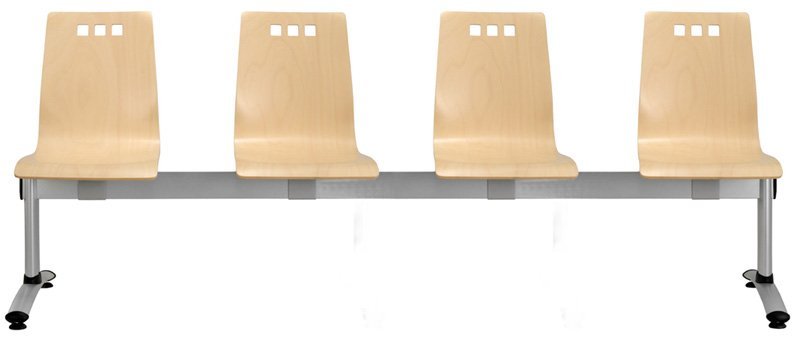Ławka czteroosobowa Berni, stelaż metalowy w kolorze czarnym lub szarym, szerokość całkowita 2080 mm. Siedzisko ze sklejki bukowej w kilku odcieniach, możliwość tapicerowania siedziska i oparcia.