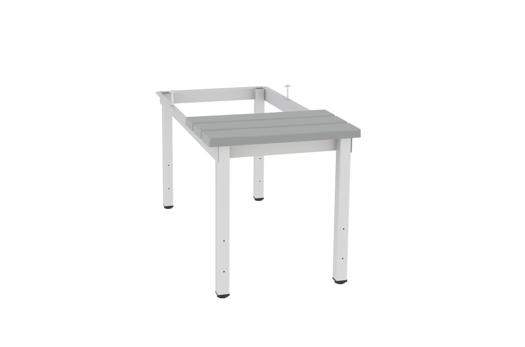 Podstawa z ławką economy do szaf z regulowanymi nogami. Wymiary: wysokość 390 x szerokość 890 x głębokość 745 mm. Kolorowy wzór nóg w kolorze korpusu. Drewniana deska.