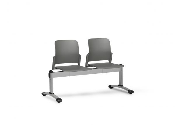Ławka dwuosobowa Mayer Class 41C2. Idealna do poczekalni. Różne kolory tworzywa sztucznego, rama czarna, chromowana lub srebrna perła. Cena bez podłokietników. Siedzisko można zastąpić czarnym stolikiem bocznym.