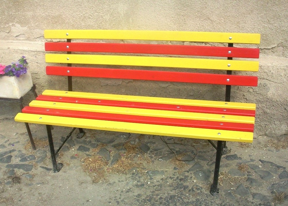 Ławka Monag bez oparcia, z oparciem. Panele boczne - żeliwo malowane proszkowo i drewno świerkowe o długości 1600 mm. Odcień żeliwa i drewna według życzeń klienta. Gwarancja 2 lata.