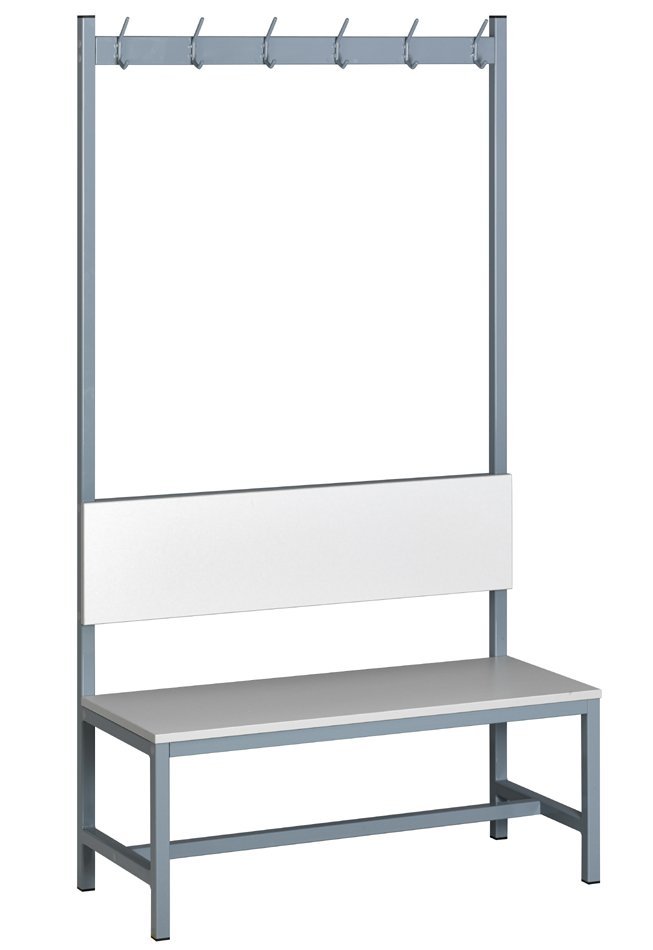 Ławka szatniowa z oparciem i wieszakiem, szerokość 1000 x wysokość 1800 x głębokość 300 mm, waga 34 kg.