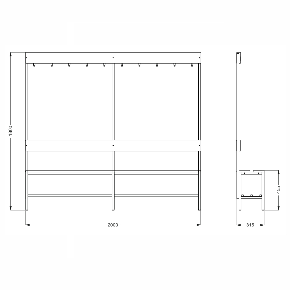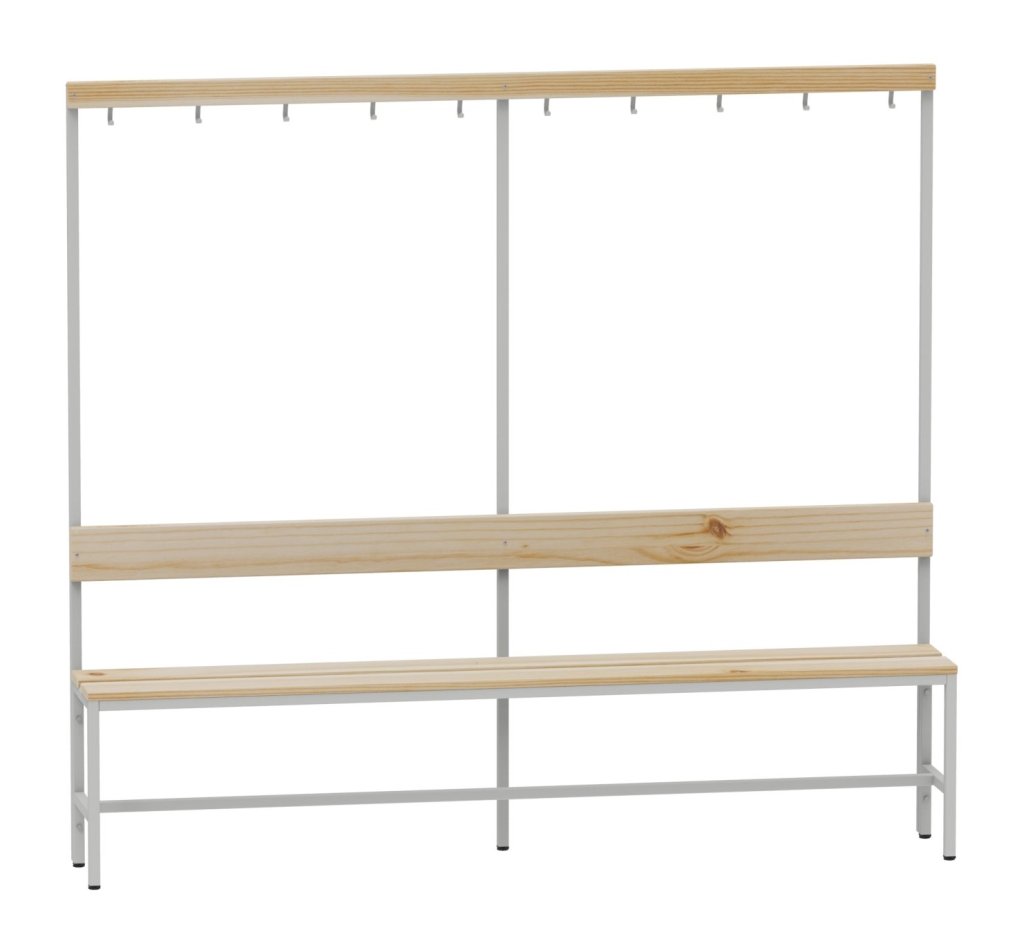Ławka szatniowa z wieszakiem, obustronna szerokość 2000 mm.