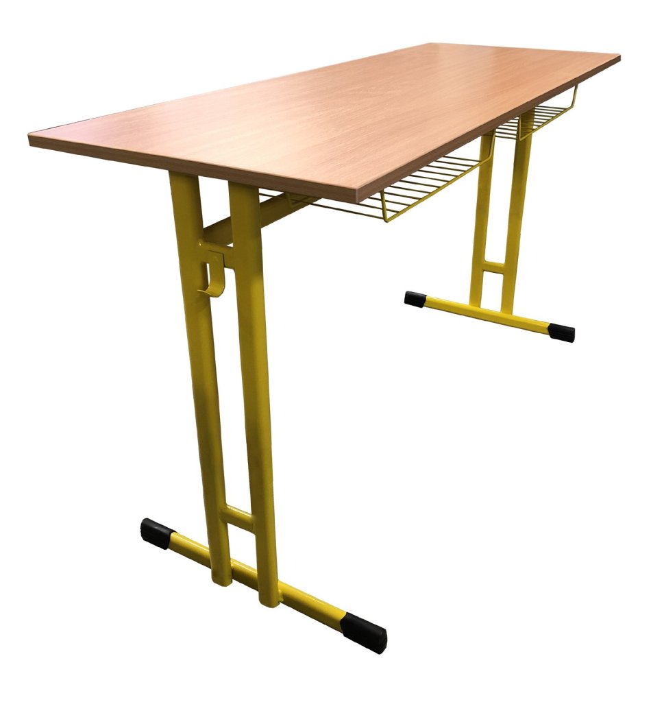 Dwuosobowy stolik szkolny z regulacją wysokości. Blat LTD 18mm z krawędzią ABS 2mm, proste narożniki. Rozmiar blatu 1300 x 500 mm. Konstrukcja stalowa z płaskich profili owalnych. Kolor konstrukcji według próbki RAL.