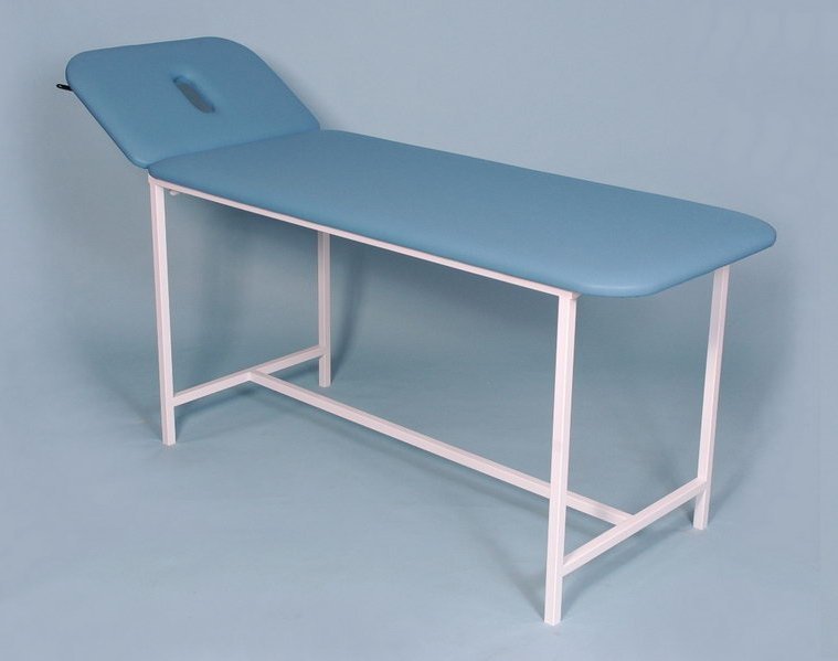 Kozetka do badań o stałej wysokości 620 mm, wymiary powierzchni leżącej 670 x 2000 mm, nośność 170 kg. Tapicerowana skajem medycznym. Standardowo wyposażona w uchwyt na rolkę prześcieradła medycznego z możliwością dwustronnego mocowania.