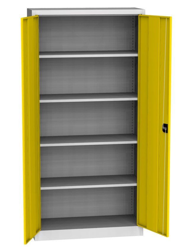 Szafa na dokumenty metalowa dwudrzwiowa, 4 półki, szerokość 914, wysokość 1950, głębokość 400 mm, różne kolory, zamykana. W kolorze jasnoszarym RAL 7035 w specjalnej cenie.