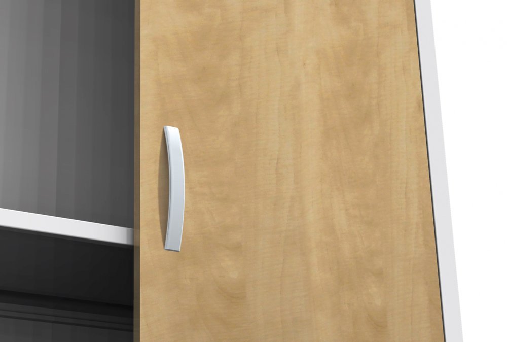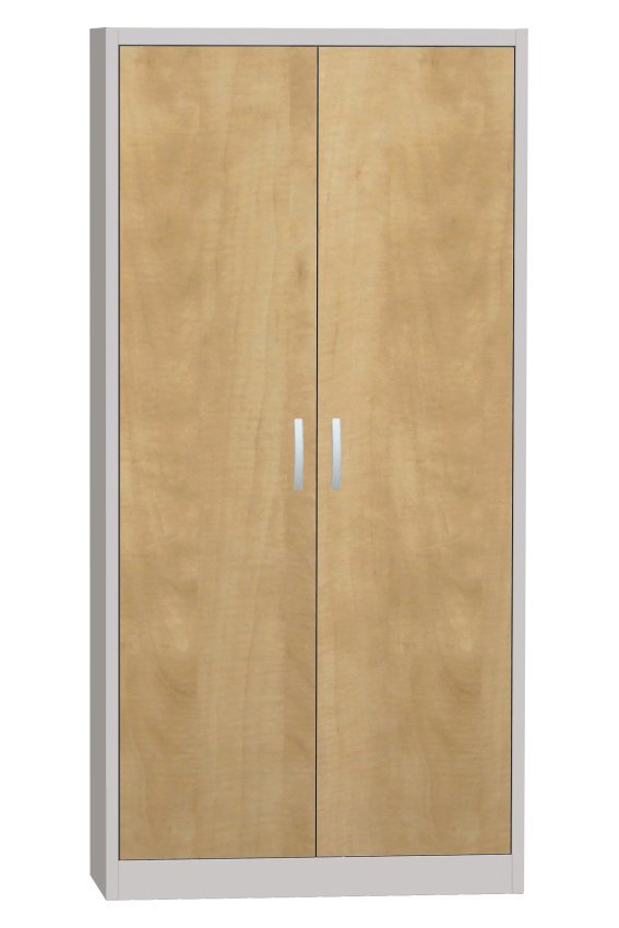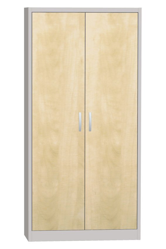 Szafka metalowa z drzwiami laminowanymi w kolorze buku, brzozy lub wiśni. Spawany stabilny korpus, 4x regulowane metalowe półki o nośności 60 kg. Wysokość 1800 x szerokość 800 x głębokość 400 mm. Uchwyt metalowy, bez zamka.