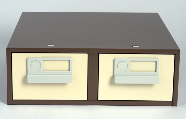 Szafka kartotekowa metalowa z dwiema szufladami, na dokumenty w formacie A5, szerokość 542, wysokość 206, głębokość 422 mm, zamek cylindryczny, różne kolory.