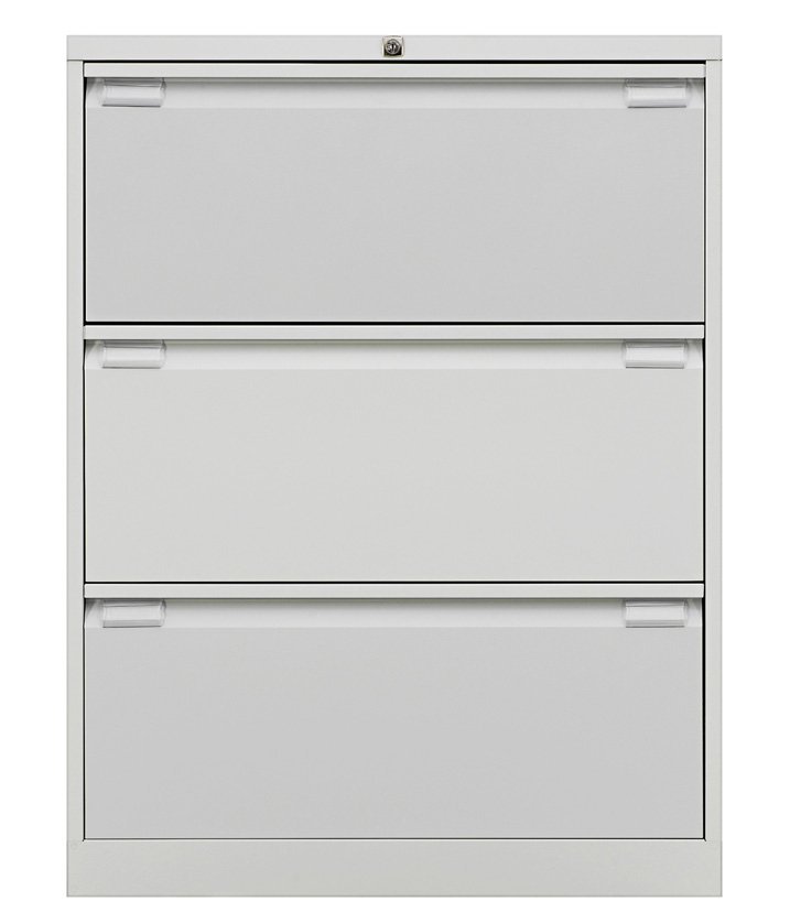 Metalowa szafka z trzema szufladami na dokumenty i segregatory wiszące w formacie A4, szerokość 800, wysokość 1016, głębokość 622
