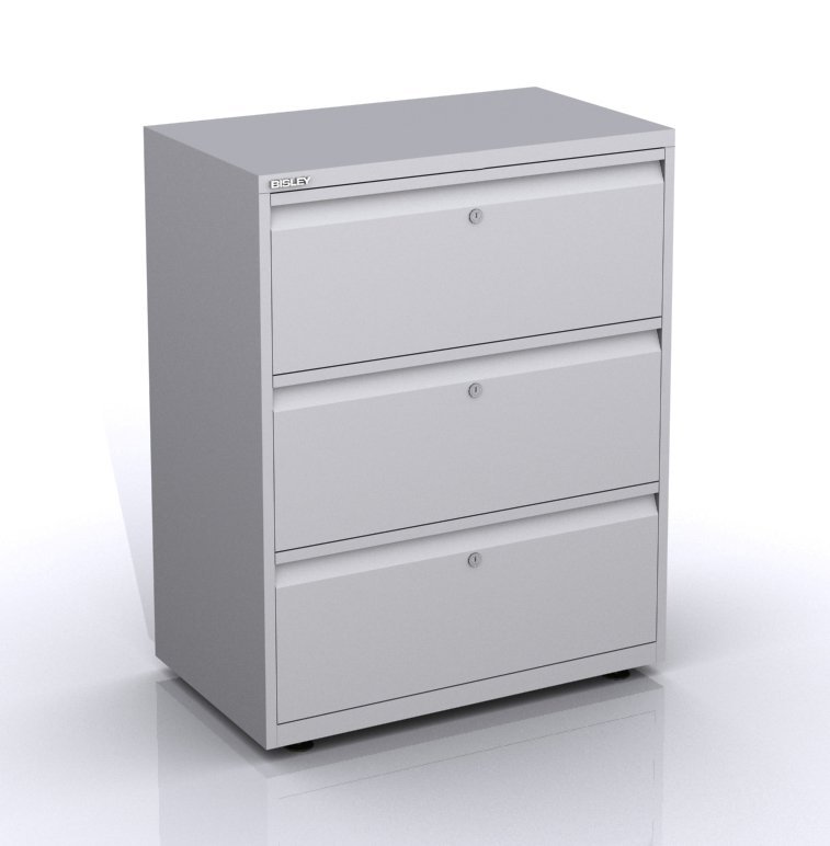 Wysokiej jakości szafka na dokumenty z trzema szufladami do przechowywania teczek w formacie A4 i Foolscap z indywidualnie zamykanymi szufladami. Szerokość 1000 mm, wysokość 997 - 1021 mm, głębokość 470 mm. w zestawie podstawa do wyrównywania nierówności podłoża. Wykonane z blachy o grubości 0,9 mm.