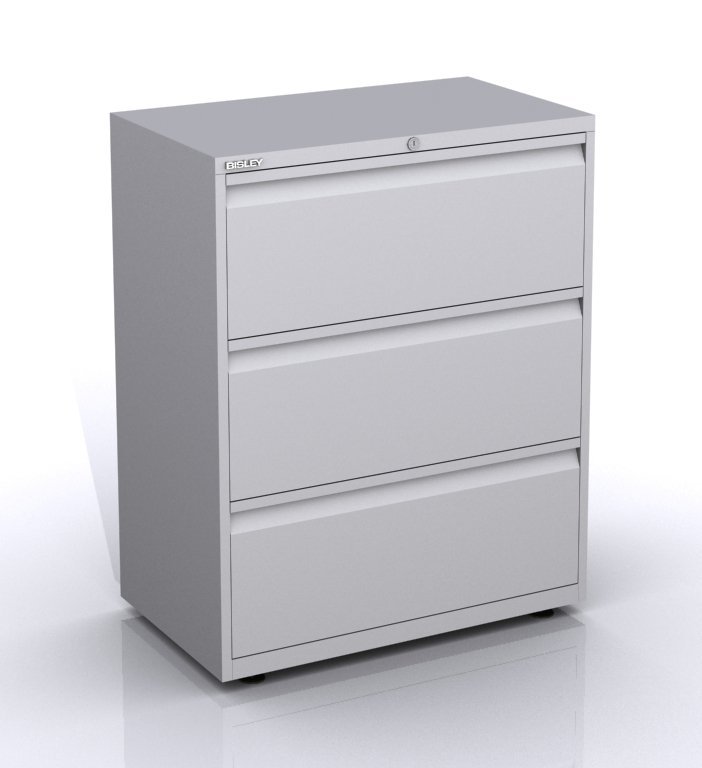 Wysokiej jakości szafka na dokumenty z trzema szufladami do przechowywania teczek w formacie A4 i Foolscap z indywidualnie zamykanymi szufladami. Szerokość 1000 mm, wysokość 997 - 1021 mm, głębokość 470 mm. w zestawie podstawa do wyrównywania nierówności podłoża. Wykonane z blachy o grubości 0,9 mm.