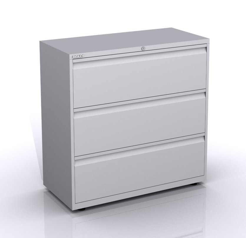 Wysokiej jakości szafka na dokumenty z trzema szufladami do przechowywania teczek w formacie A4 i Foolscap z indywidualnie zamykanymi szufladami. Szerokość 1000 mm, wysokość 997 - 1021 mm, głębokość 470 mm. w zestawie podstawa do wyrównywania nierówności podłoża. Wykonane z blachy o grubości 0,9 mm.