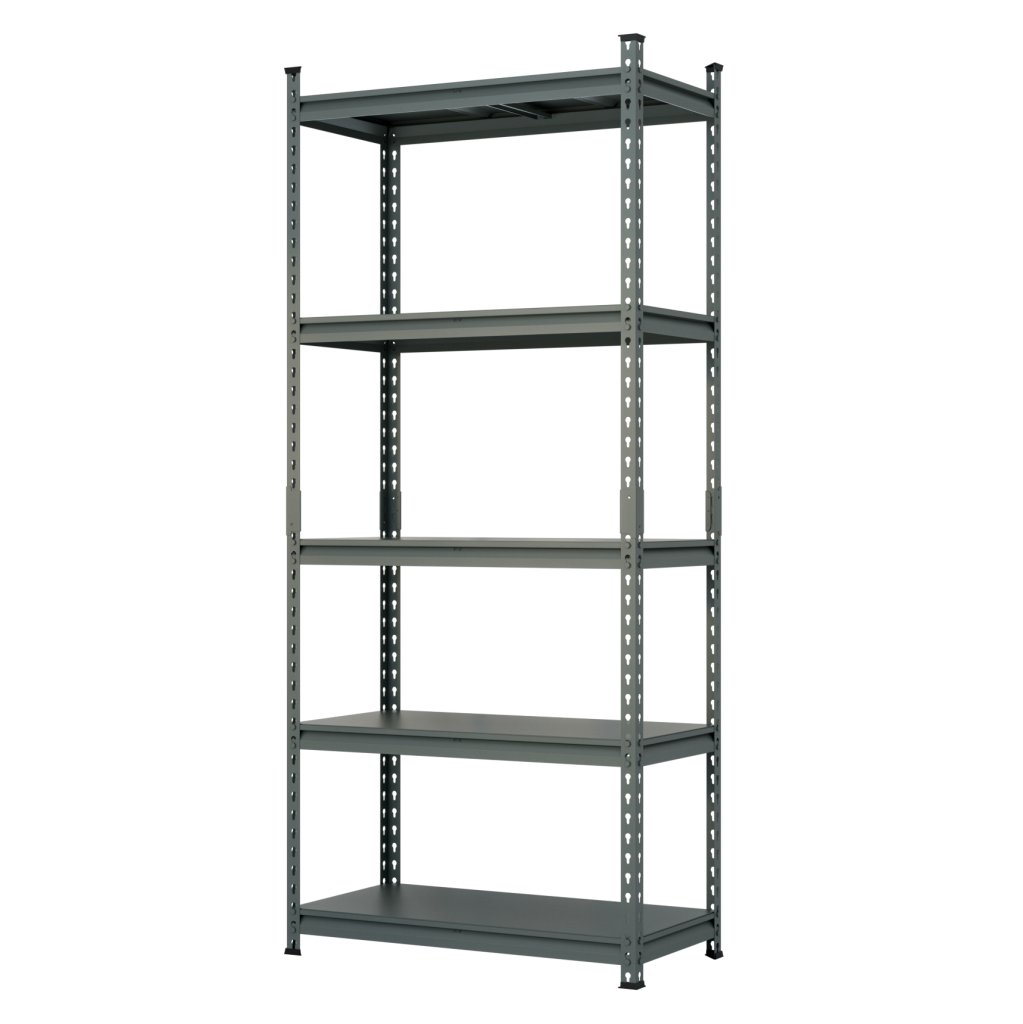 Uniwersalny, całkowicie metalowy regał bezśrubowy, idealny do warsztatów, magazynów, biur, garaży lub archiwów. Wykonany z wysokiej jakości blachy stalowej, powierzchnia malowana proszkowo na szaro. 5 regulowanych półek ze wzmocnieniem. Nośność półki 175 kg. Wymiary półki (wys. x szer. x gł.) 1830 x 800 x 500 mm. Dostarczany w stanie zdemontowanym.