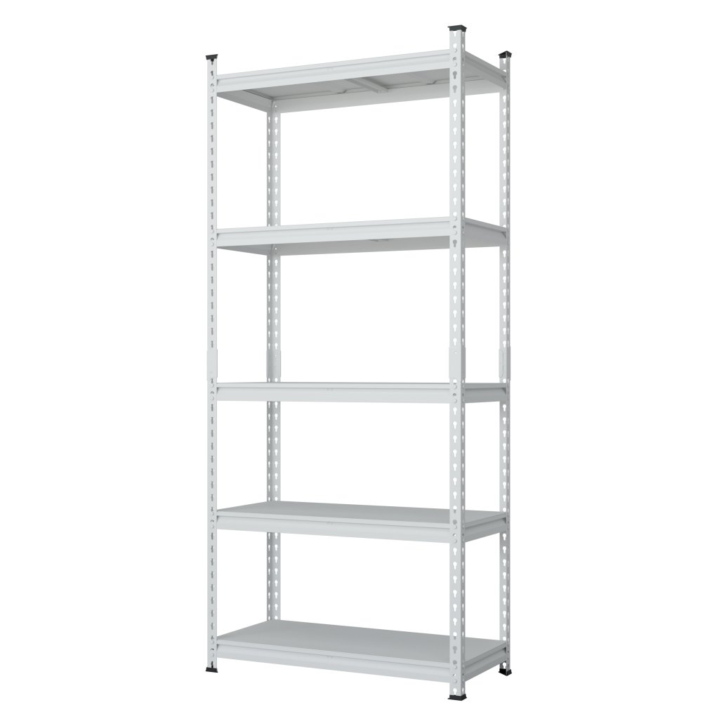 Standardowy, całkowicie metalowy regał bezśrubowy, idealny do warsztatów, magazynów, biur, garaży lub archiwów. Wykonany z wysokiej jakości blachy stalowej, powierzchnia malowana proszkowo na biało. 5 regulowanych półek ze wzmocnieniem. Nośność półki 175 kg. Wymiary (wys. x szer. x gł.) 1830 x 900 x 500 mm. Dostarczany w stanie zdemontowanym.