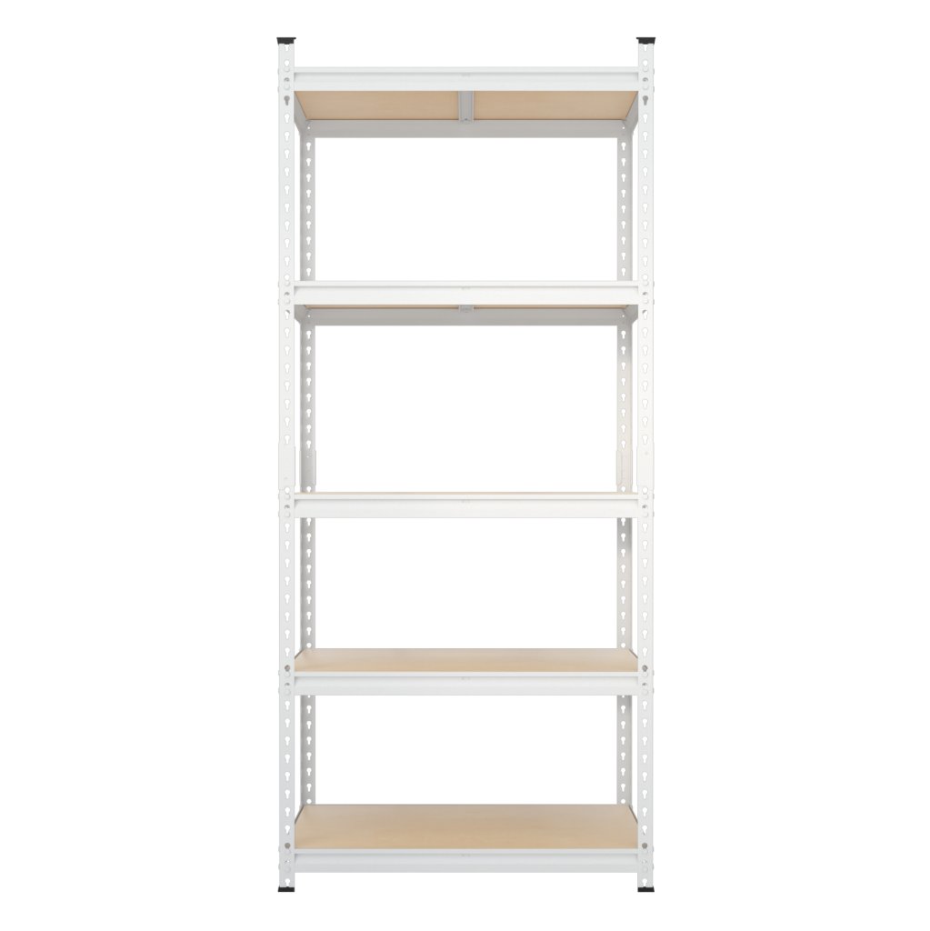 Uniwersalny, metalowy regał bezśrubowy, idealny do warsztatów, magazynów, biur, garaży lub archiwów. Wykonany z wysokiej jakości blachy stalowej, powierzchnia malowana proszkowo na biało. 5 MDF regulowanych półek ze wzmocnieniem. Nośność półki 175 kg. Wymiary (wys. x szer. x gł.) 1830 x 800 x 400 mm. Dostarczany w stanie zdemontowanym.