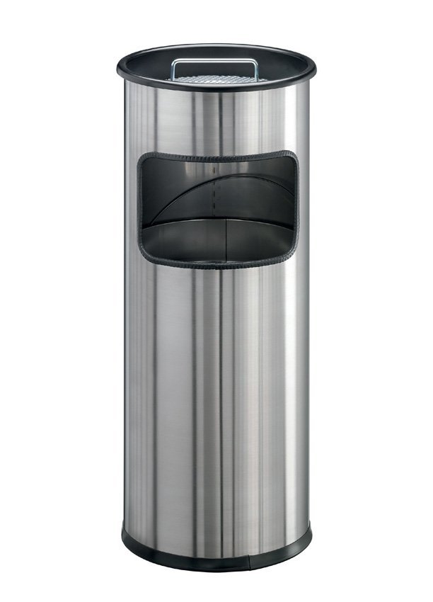 Okrągły metalowy kosz na śmieci ze stali nierdzewnej z popielniczką. Nadaje się do użytku wewnętrznego i zewnętrznego. Wyjmowany pełny opis i parametry