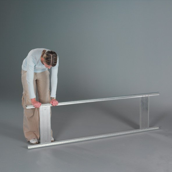 Regał metalowy dostawiany 3M w kolorze RAL jasnoszarym, głębokość 400, 500 lub 600 mm, wysokość 2000 (5 półek) i 2500 (6 półek), szerokość 1000 mm. Bezśrubowy, łatwy montaż. Nośność półki 100 lub 230 kg. Uwaga, tylko jeden bok z nóżkami — drugi bok służy do łączenia z regałami standardowymi.