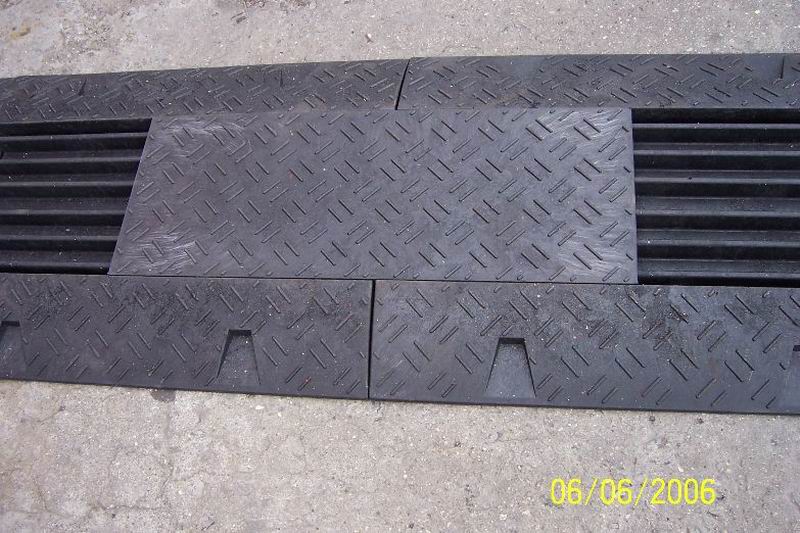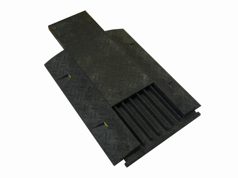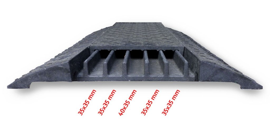 Most kablowy z wkładką, kolor czarny. Stosowany do zabezpieczania kabli, węży, rur układanych przy drogach, w zakładach produkcyjnych, na wystawach, imprezach kulturalnych itp. Odporny na chemikalia, trudnopalny, łatwy w utrzymaniu. Szybki montaż i demontaż, antypoślizgowość i stabilność.