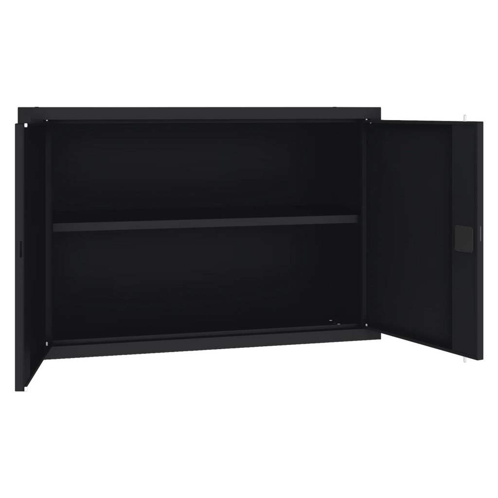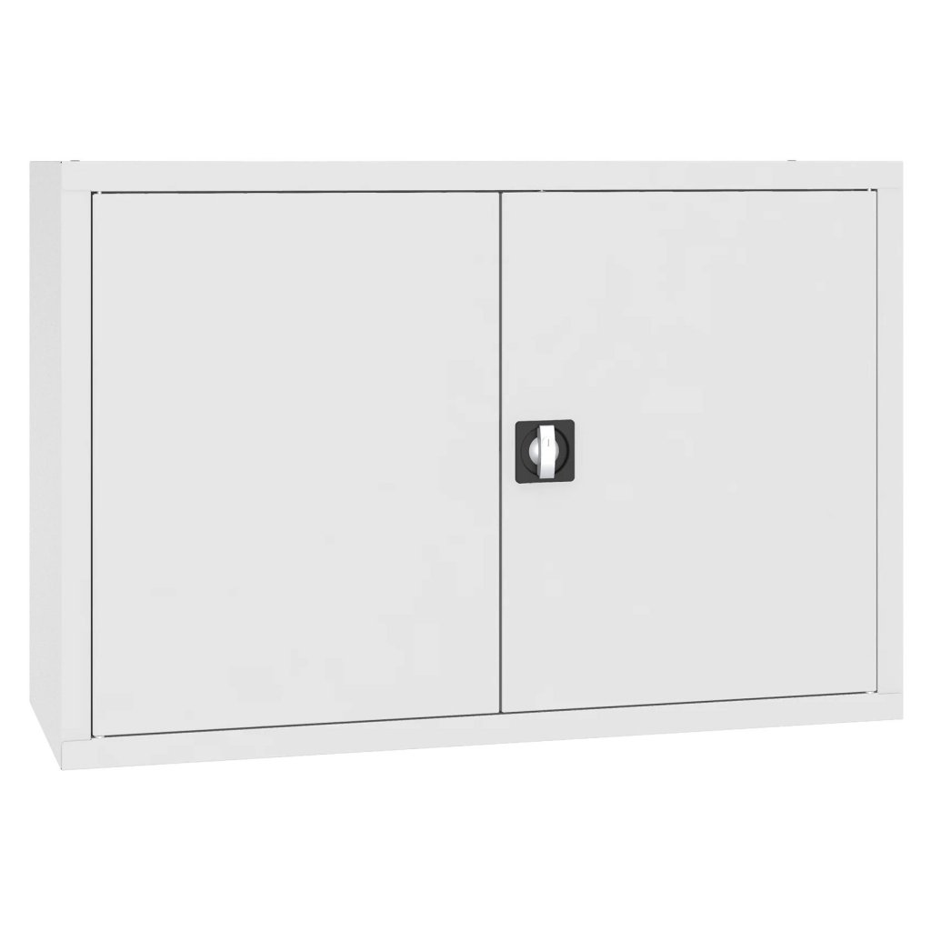 Dwudrzwiowa nadstawka do szafy biurowej metalowa z jedną półką, nadająca się jako przedłużenie. Szerokość 1200 mm, wysokość 810, głębokość 435 mm. Dwupunktowa blokada rozstawu osi, różne kolory.
