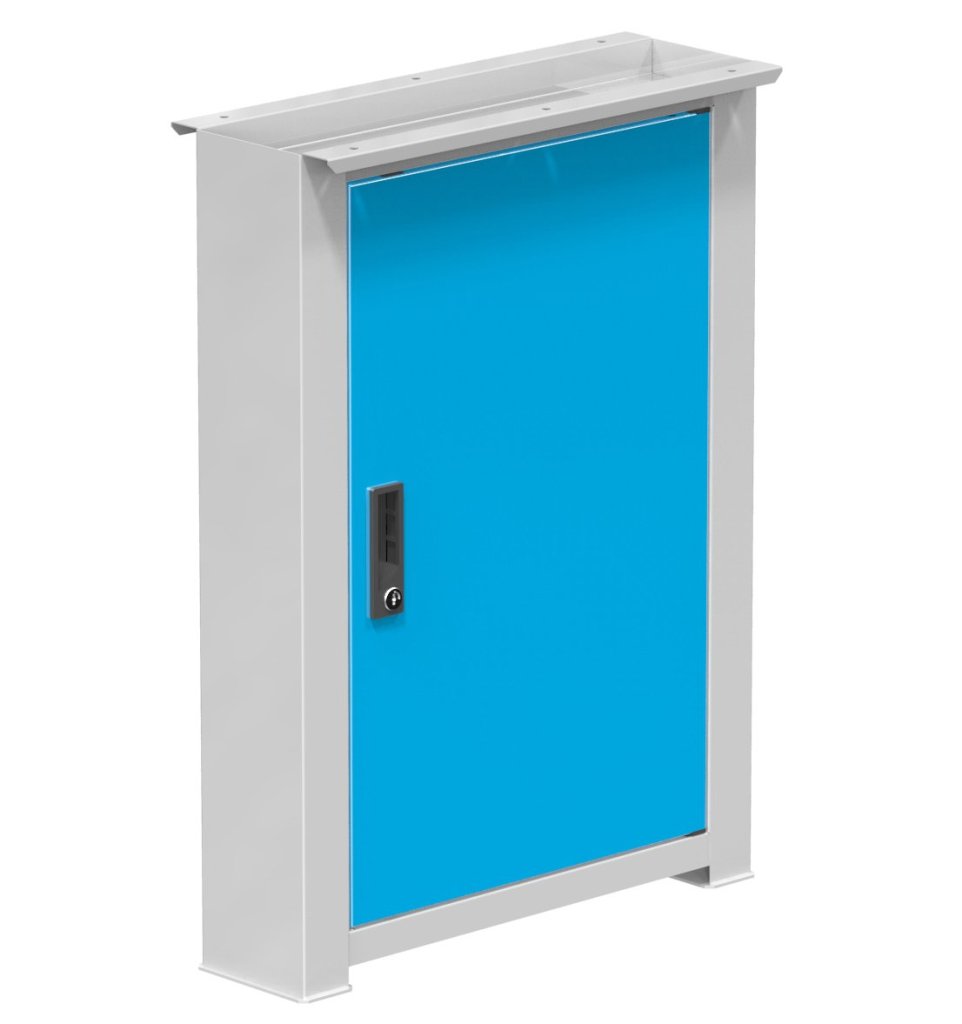 Noga do stołu roboczego, szerokość nogi 150 mm, wysokość 840 mm, głębokość 603 lub 703 mm. Zamykane drzwi + 1x regulowana półka, nośność 800 kg.