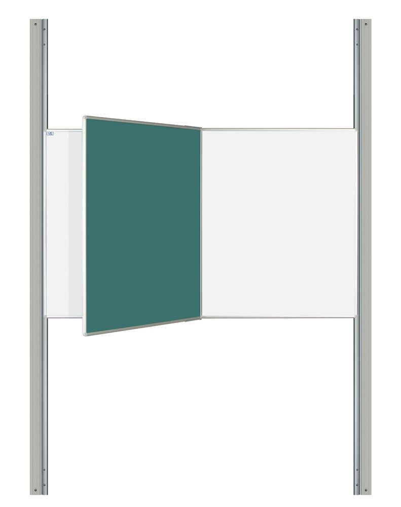 Tablica ceramiczna magnetyczna z centralnym skrzydełkiem obrotowym. Rama aluminiowa anodowana w naturalnym odcieniu, narożniki plastikowe. Powierzchnia łączona do pisania kredą w kolorze zielonym, do pisania markerem w kolorze białym. Dostarczany z zestawem do montażu na ścianie. Wymiary wysokość 120 x szerokość 240 cm. Wariant z mocowaniem do ściany. Dodatkowe opcje takie jak montaż na stojaku AL Lifting Stand lub AL Pylon znajdziesz poniżej, w dziale MOŻESZ DODATKOWO KUPIĆ razem z innymi produktami.