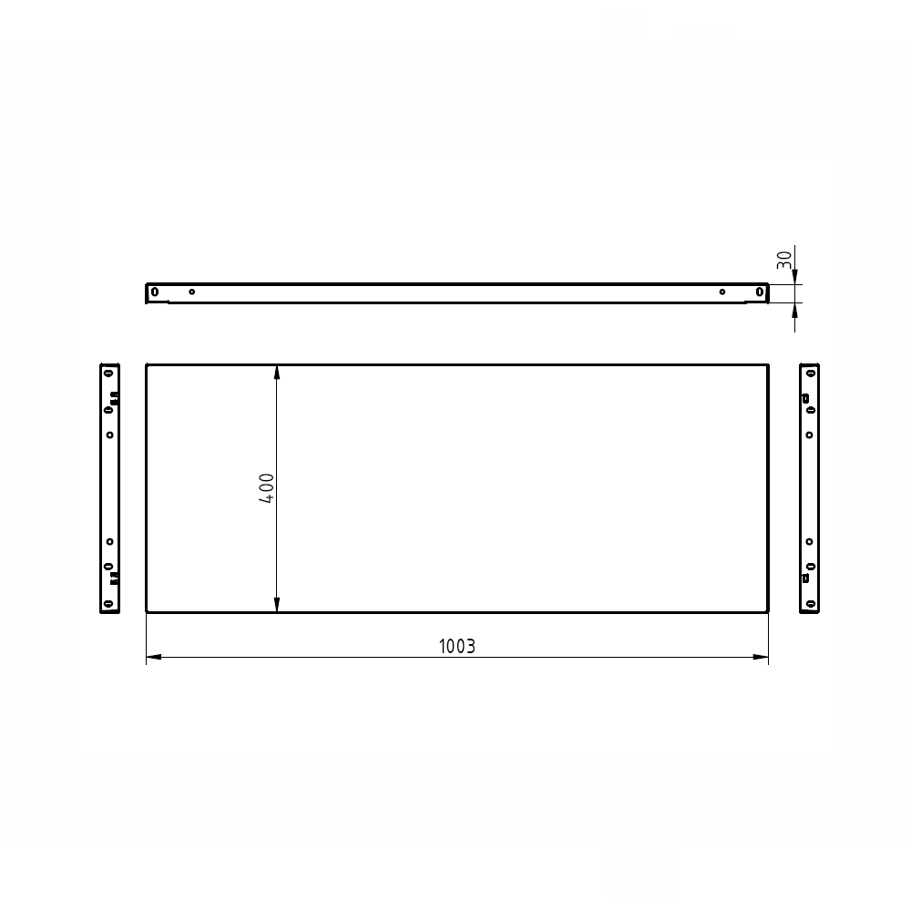 Półki można dowolnie regulować w odstępach co 50 mm. Oddzielne półki do dodatkowego dokupienia w pakiecie z materiałem łączącym. Nośność 100 kg, głębokość 400 mm, szerokość 1000 mm, wysokość 30 mm.