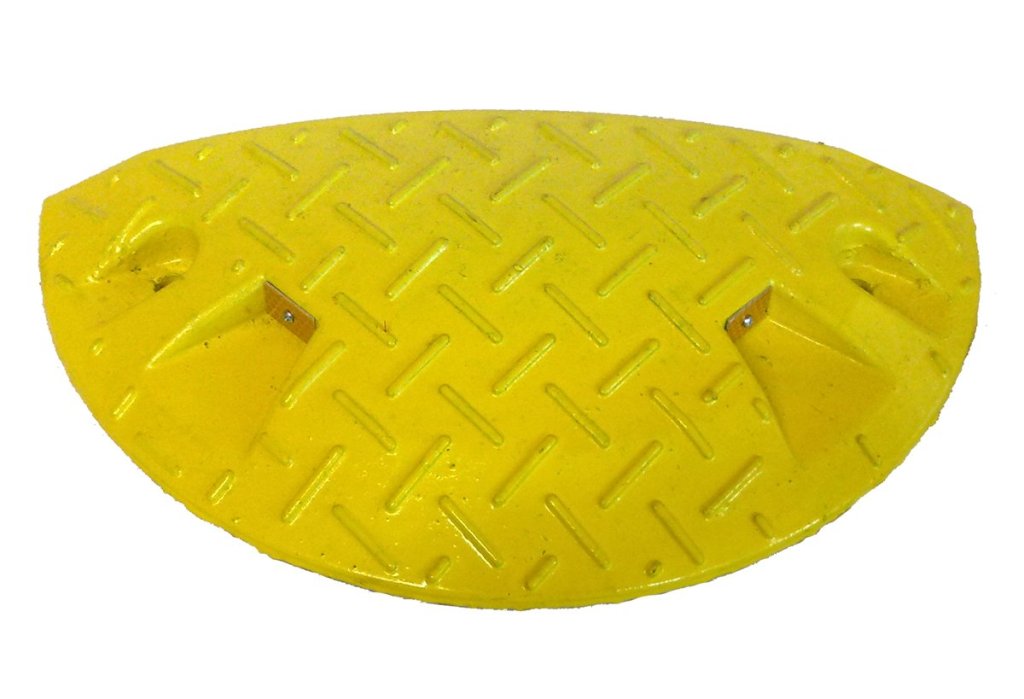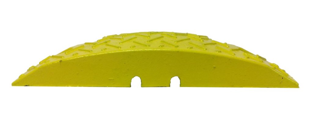 Urządzenia budowlano-ruchowe mające na celu zmniejszenie niepożądanej prędkości pojazdów lub przestrzeganie dopuszczalnych prędkości pojazdów na drogach lokalnych. Zastosowanie – drogi, parkingi, wejścia do budynków. Kolor żółty, dla prędkości 10 km/h. Wykonane z trwałego materiału pochodzącego z recyklingu. Dobrze widoczny w nocy. Wysokość 60 x szerokość 500 x głębokość 430 mm.