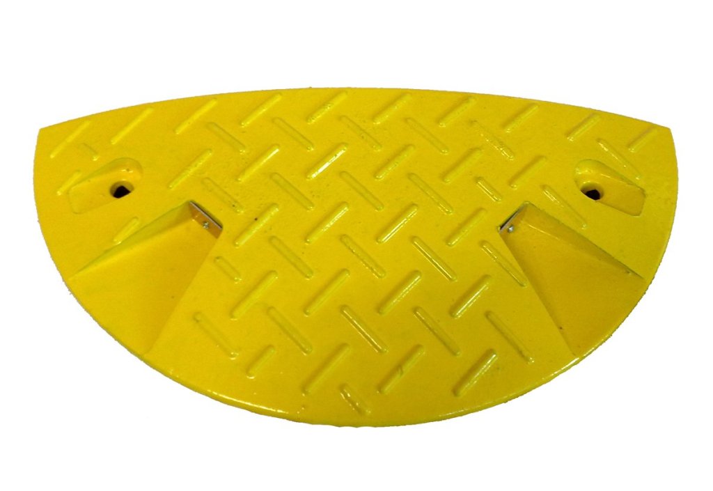 Urządzenia budowlano-ruchowe mające na celu zmniejszenie niepożądanej prędkości pojazdów lub przestrzeganie dopuszczalnych prędkości pojazdów na drogach lokalnych. Zastosowanie – drogi, parkingi, wejścia do budynków. Kolor żółty, dla prędkości 10 km/h. Wykonane z trwałego materiału pochodzącego z recyklingu. Dobrze widoczny w nocy. Wysokość 60 x szerokość 500 x głębokość 430 mm.