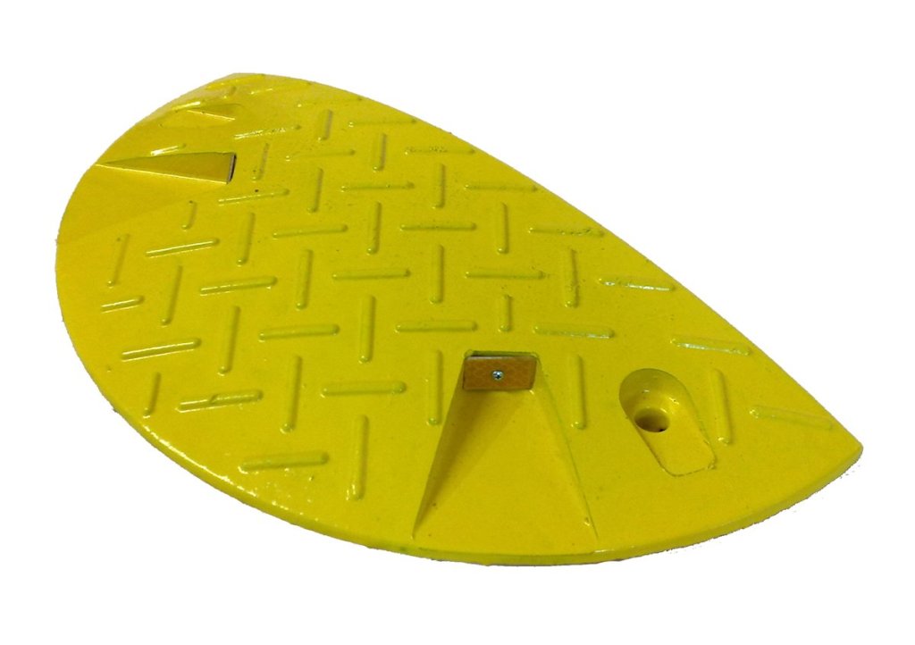 Urządzenia budowlano-ruchowe mające na celu zmniejszenie niepożądanej prędkości pojazdów lub przestrzeganie dopuszczalnych prędkości pojazdów na drogach lokalnych. Zastosowanie – drogi, parkingi, wejścia do budynków. Prędkość 10 km/h, kolor żółty. Wykonane z trwałego materiału pochodzącego z recyklingu. Dobrze widoczny w nocy. Wysokość 60 x szerokość 215 x głębokość 430 mm.