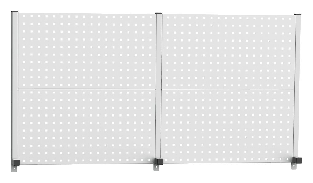 Panel perforowany do zawieszania uchwytów narzędziowych na stołach warsztatowych i deskach o szerokości 1500 mm. Wysokość panelu 760, szerokość 1500, głębokość 95 mm.