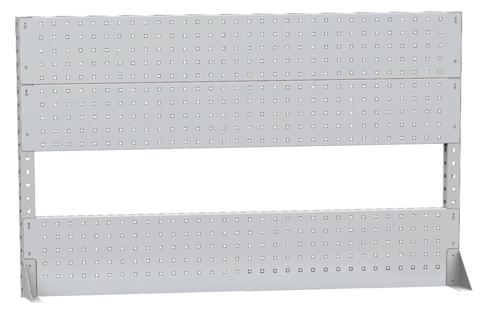 Panel perforowany do zawieszania uchwytów narzędziowych na stołach montażowych i deskach o szerokości 1500 mm. Wysokość 975, szerokość 1310, głębokość 130 mm.