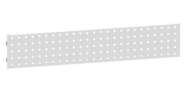 Płyty perforowane na stoły, zawieszane w środnikach 8NS, otwory kwadratowe 10 x 10 mm, rozstaw otworów 38 x 38 mm. Wysokość 190 mm, szerokość modułu 1000 mm.