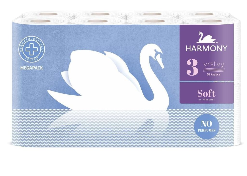 Trójwarstwowy papier toaletowy biały. W kartonie znajdują się 3 opakowania po 16 sztuk.