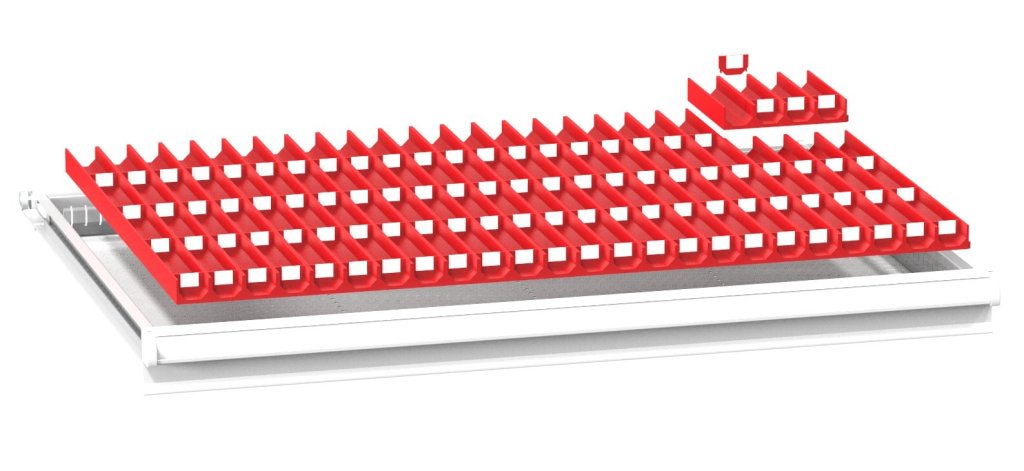 Nástrojové rámy jsou jednotné pro celý ukládací a transportní systém, pouze nástrojové rámy do zásuvek jsou mírně odlišné (jsou o několik mm užší), jejich úložná kapacita je však shodná.