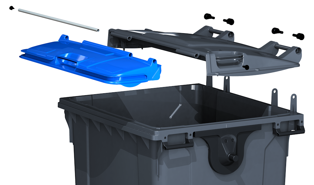 Pojemnik na odpady nadaje się do gromadzenia odpadów komunalnych i przemysłowych. W kolorze czarnym, mała pokrywka w różnych kolorach. W zestawie dwa kółka z hamulcem. Wymiarowo odpowiada normie DIN 30 700 i UNI 9260.