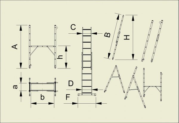 Drabina aluminiowa 4-stopniowa łącznie z podestem Forte (6 modeli)