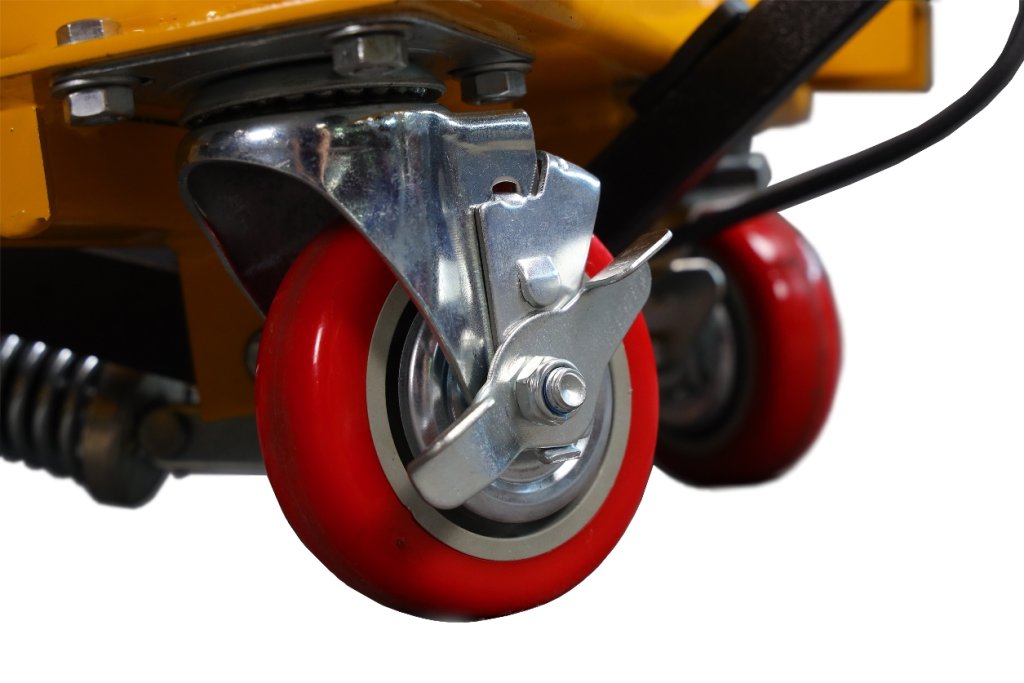 Platforma nożycowa wyposażona w nożną pompę hydrauliczną o udźwigu 1000 kg i maksymalnej wysokości podnoszenia 1000 mm.