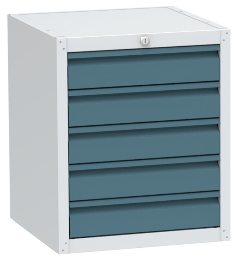 Szuflada biurka zawieszana, szerokość 500, wysokość 600, głębokość 500 mm. 5x nasadka 99 mm. Kolor korpusu RAL 7035 jasnoszary.