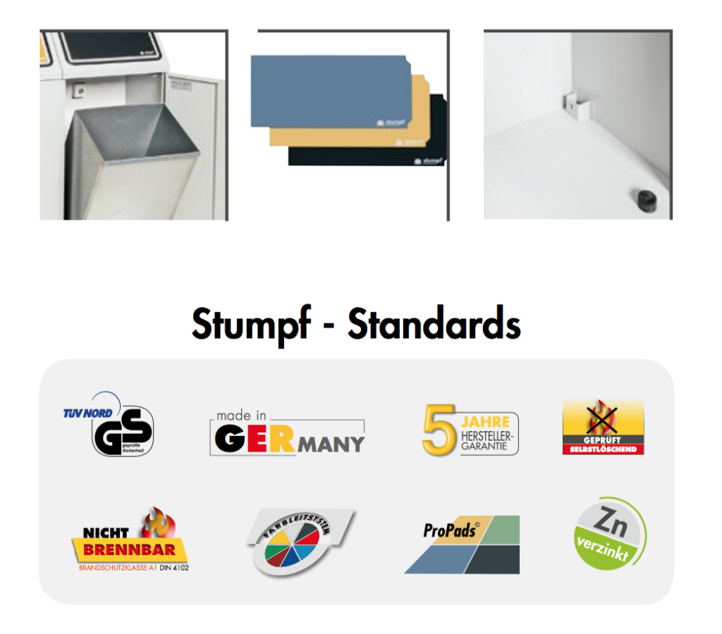 Kosz do segregacji odpadów, metalowy, o wymiarach - wysokość 975 x szerokość 860 x głębokość 320 mm. Cała konstrukcja posiada powierzchnię ocynkowaną. Zamknięcie posiada solidne osłony w 3 kolorach dla wyróżnienia. Klapa jest samozamykająca i odporna na zapachy. Kosz posiada zamykane drzwiczki z przodu oraz wyjmowany kosz wewnętrzny 3x 45 l. Dwie regulowane nóżki wyrównujące nierówności podłoża. Kosz jest produktem wysokiej jakości pochodzącym z Niemiec.