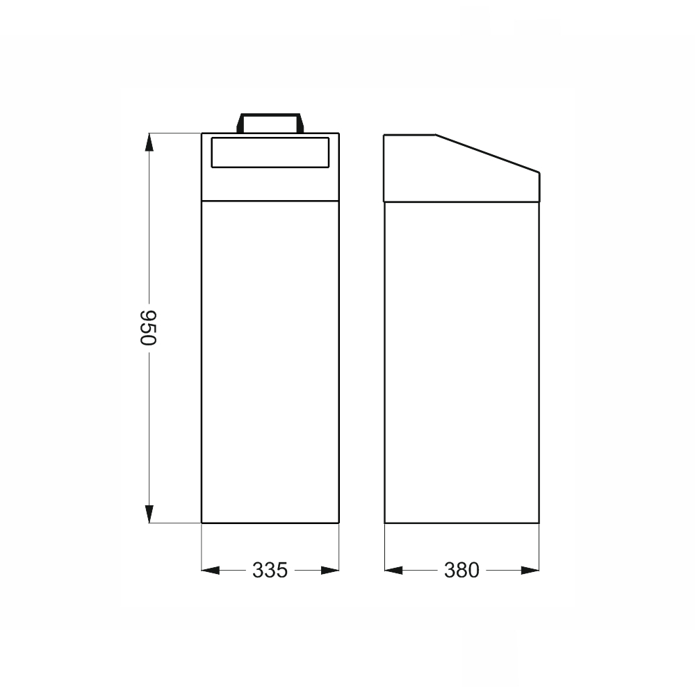 - wysokość 950 x szerokość 335 x głębokość 380 mm