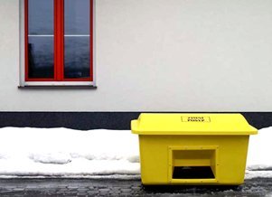 Pojemniki do posypywania zimowego przeznaczone są do przechowywania materiału posypowego (piasek, żwir, sól itp.). Pojemniki wykonane są z wytrzymałego włókna szklanego z zawiasami ze stali nierdzewnej. Kolor żółty. Pojemność 1100 l, wymiary wys. 990 x szer. 1635 x gł. 1220 mm.