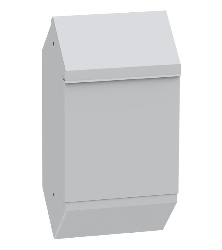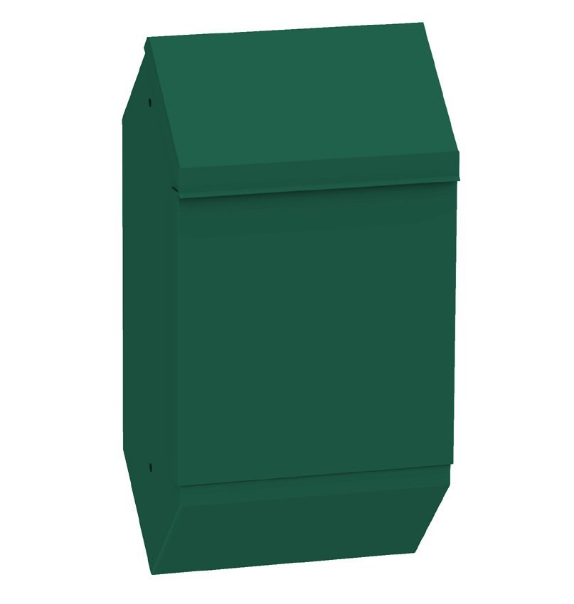 Zamykany pojemnik na woreczki na psie odchody. Ocynkowany, z zewnętrzną powłoką proszkową. Wysokość 510 x szerokość 300 x głębokość 105 mm.