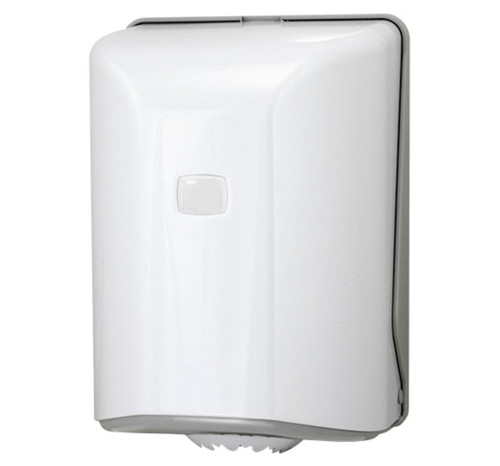 Plastikowy pojemnik na ręczniki w rolce (maksymalna średnica środkowa 20 cm). Zamykane, odwijanie centralne.